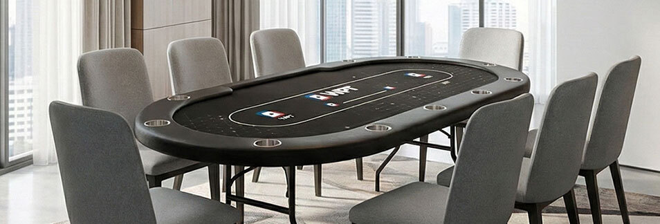 The WPT BBO Aces Pro is a collaboration between the World Poker Tour and BBO Poker Tables, designed to bring the "glitz and glamor" of televised poker into your home. It is the market's most proven folding leg table, featuring a solid wood core, professional locking legs, and waterproof, fire-resistant layouts. Weighing only 80 lbs, it offers card room stability with home portability.